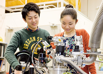 Master’s Program: We aim to foster scientists with basic understandings of various structures of substances and who can collect information through their experience at the forefront of research. We conduct advanced research on the analysis of the physical properties of electrons and ions of condensed matters at the quantum levels using the latest quantum science approaches and on the exploration and prediction of the physical properties of new substances. We also undertake exploratory research on elementary particles and atomic nuclei as the basic components of substances, the universe as an aggregation of these substances, and the Big Bang scenario, based on the forces of elementary particles and the basic quantum laws.